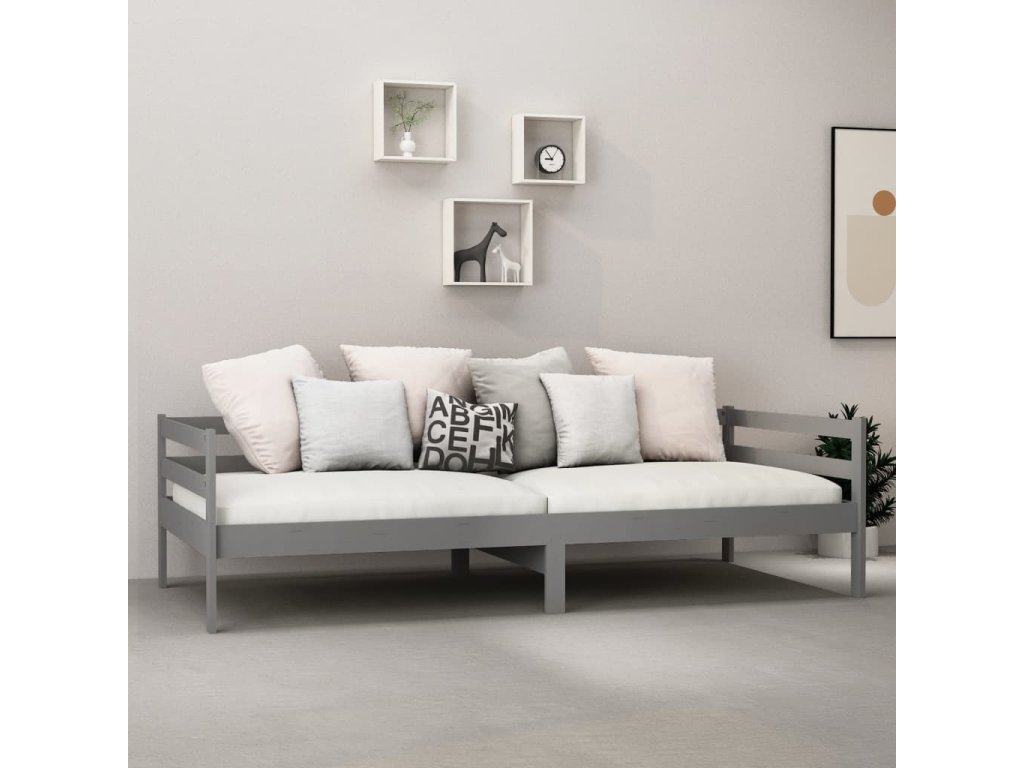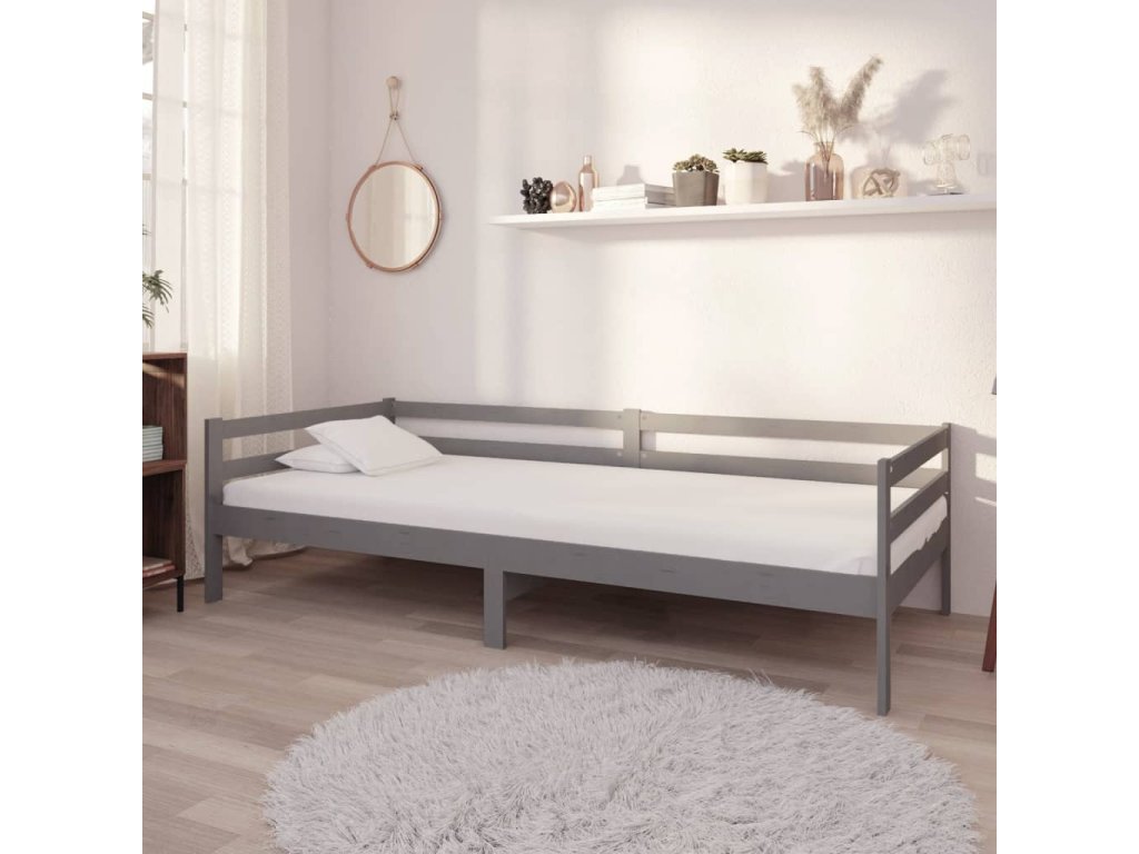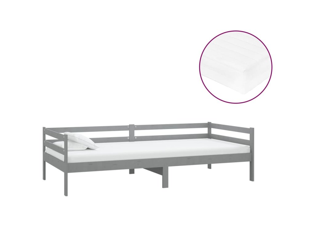 Denní postel s matrací 90 x 200 cm šedá masivní borové dřevo 3083556