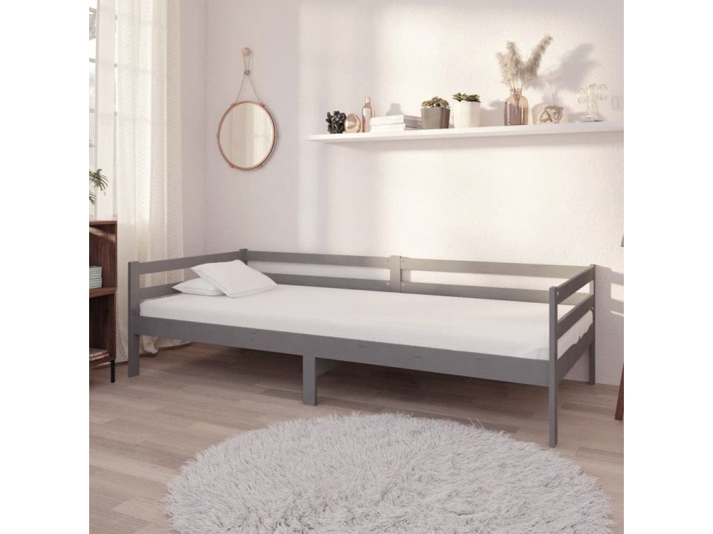 Denní postel s matrací 90 x 200 cm šedá masivní borové dřevo 3083571