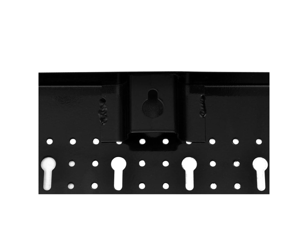 Široká kovová děrovaná deska je ideální pro vystavení nebo organizaci nářadí. Má předvrtané otvory (euro standard) a dodává se s 18 dvojitými háčky