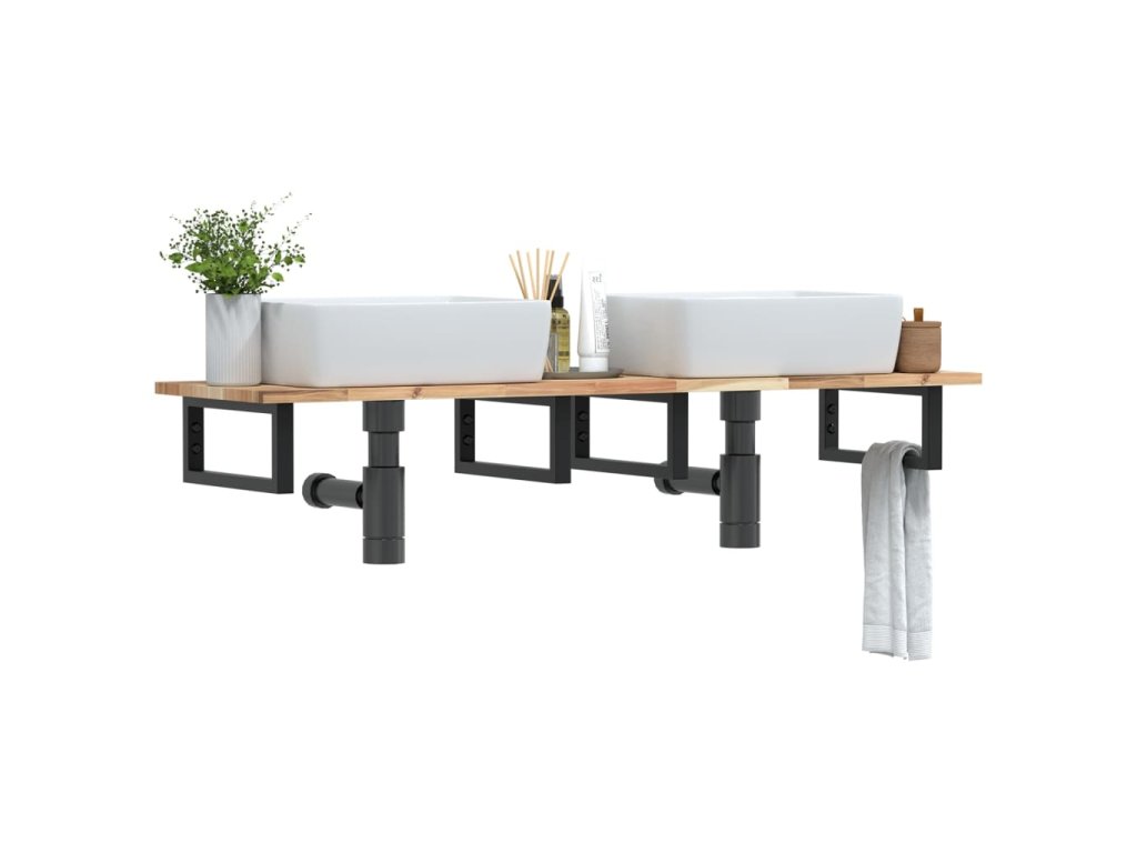 Deska pod umyvadlo nástěnná ocel a masivní akáciové dřevo 3302677