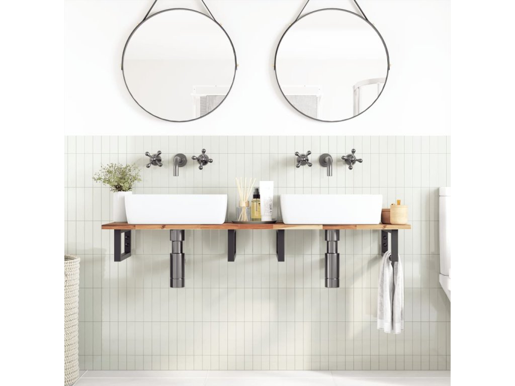Deska pod umyvadlo nástěnná ocel a masivní akáciové dřevo 3302725