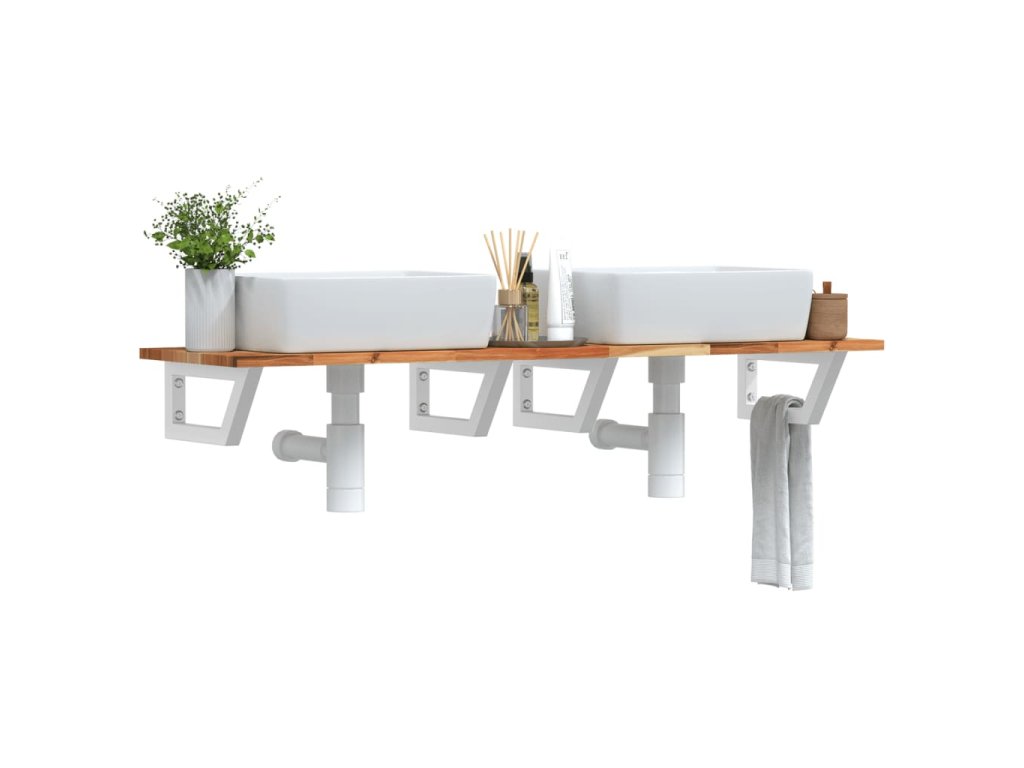 Deska pod umyvadlo nástěnná ocel a masivní akáciové dřevo 3302726