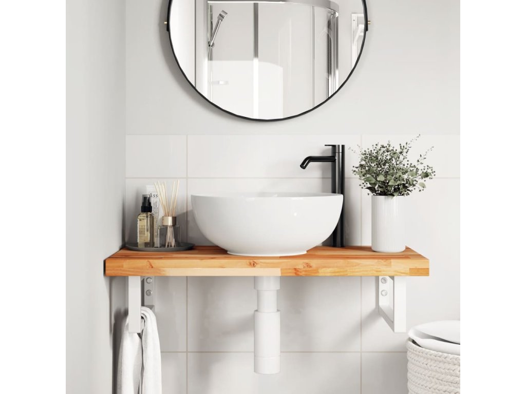 - Robustní s dlouhou životností: Díky kombinaci ocelové konstrukce a desky z masivního akáciového dřeva je tato deska na umyvadlo robustní, stabilní a má dlouhou životnost.