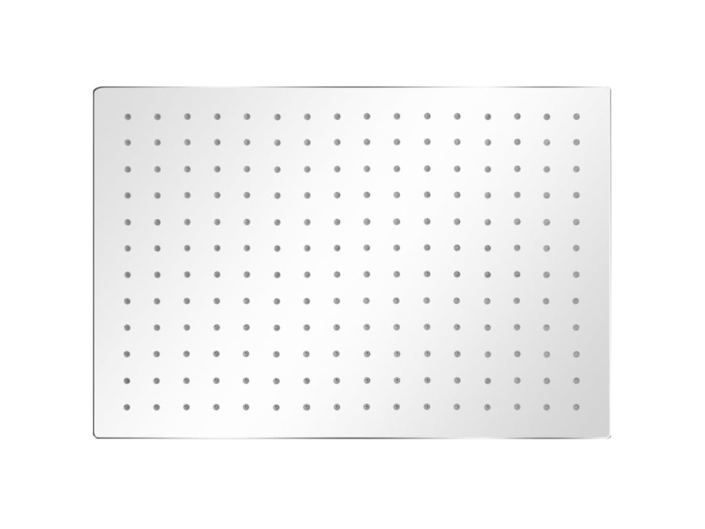 Tato obdélníková sprchová hlavice /pevná hlavová sprcha je perfektním doplňkem každé koupelny. Je opatřena velkým množstvím trysek, které rozstřikují vodu na velké ploše, aby bylo sprchování opravdu relaxačním zážitkem.