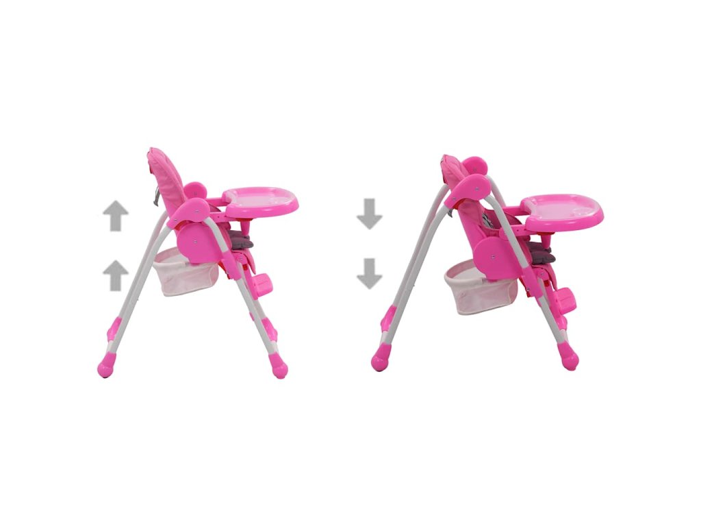 Má ocelový rám a prvky z odolného plastu pro dlouhotrvající pevnost a provozní životnost, takže vašemu dítěti poskytne spolehlivou oporu. Polstrované sedadlo s měkkým čalouněním a 5bodový bezpečnostní postroj se postarají o pohodlí a bezpečí vašeho nejmenší po celou dobu jídla. Židličku je možné naklopit do 3 různých poloh tak, aby dítě mělo za všech okolností dostatek komfortu. Upravit lze také její výšku a opěrku nohou, což rovněž přispívá k příjemnému posezení. Nasouvací stoleček je odjímatelný, aby se lépe čistil. Ve spodní části najdete úložný košík, kam si můžete ukládat různé potřeby pro děti, například hračku, plenku, ubrousky a další věci, které je dobré mít při ruce. Židlička je vzadu opatřena kolečky pro snadné přesouvání.