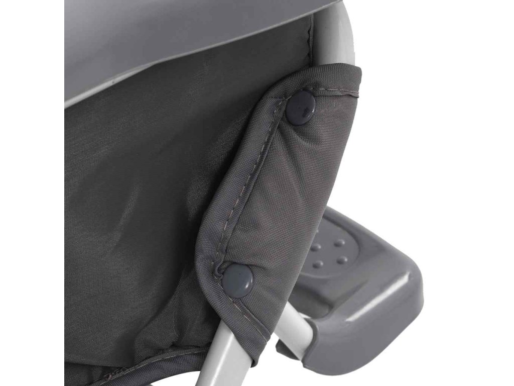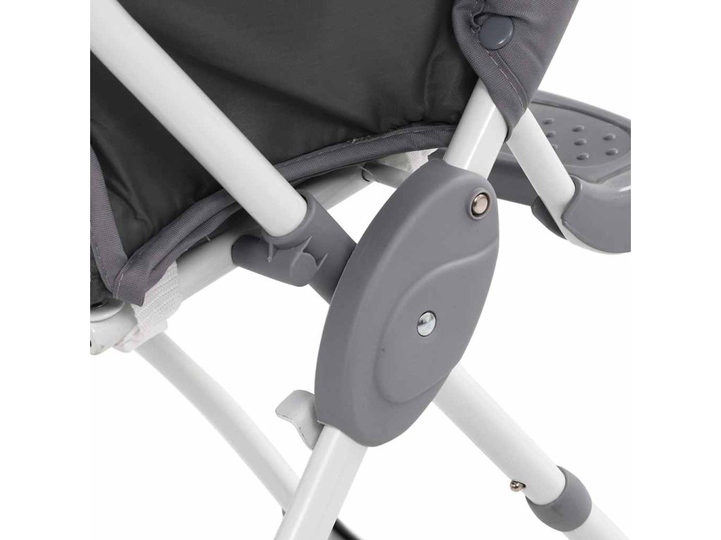 Má ocelový rám a prvky z odolného plastu pro dlouhotrvající pevnost a provozní životnost, takže vašemu dítěti poskytne spolehlivou oporu. Polstrované sedadlo s měkkým čalouněním a 5bodový bezpečnostní postroj se navíc postarají o to, aby bylo vaše nejmenší po celou dobu jídla v bezpečí a pohodlí. Nasouvací stoleček lze snadno očistit navlhčeným hadříkem. Na nastavitelné opěrce nohou si vaše dítě může nechat odpočinout nožičky. Židličku postavíte za pár sekund.