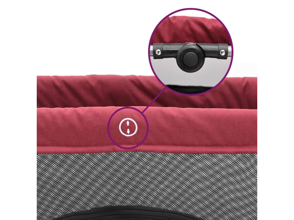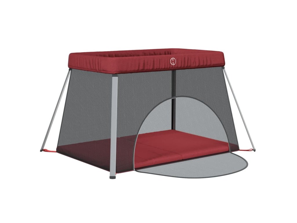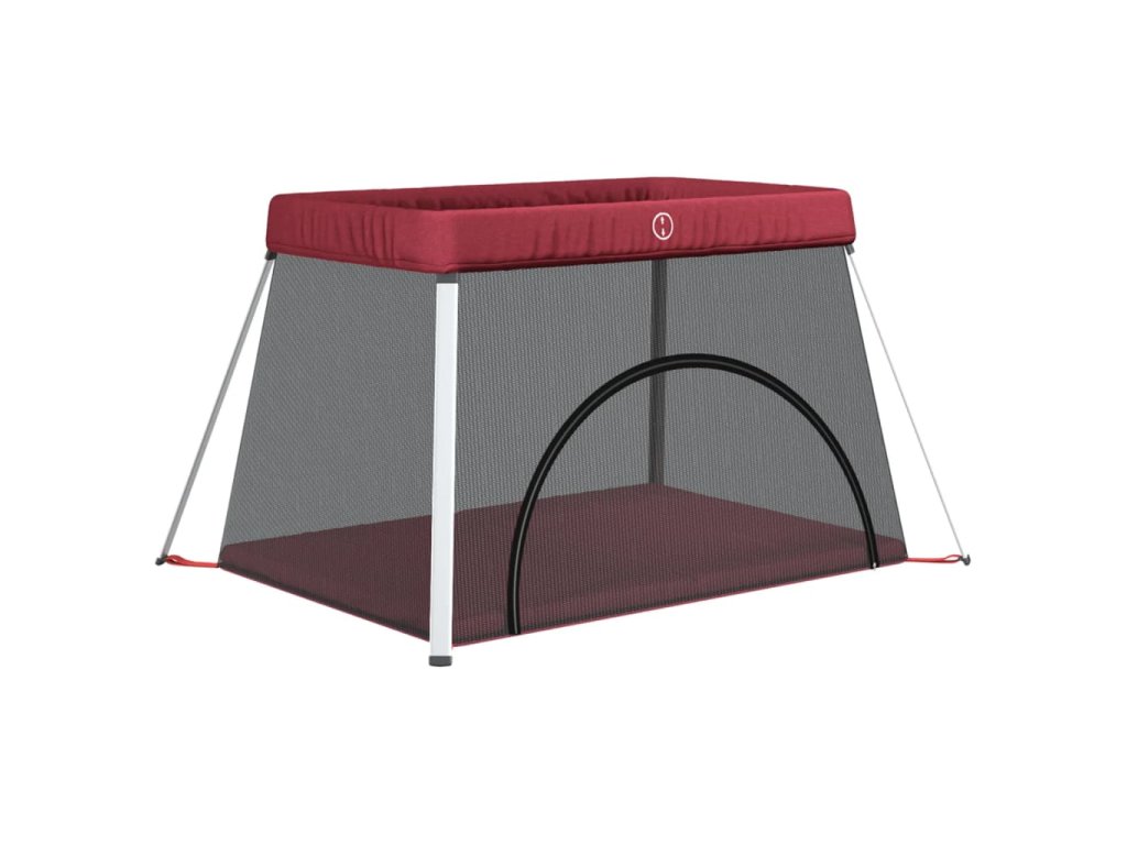 Dětská ohrádka s matrací červená lněná tkanina 10305