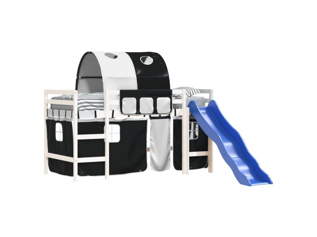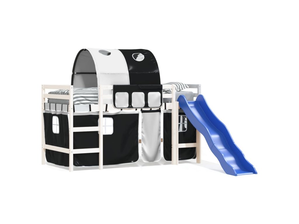 Dětská patrová postel s tunelem bílá a černá 80x200 cm borovice 3207039
