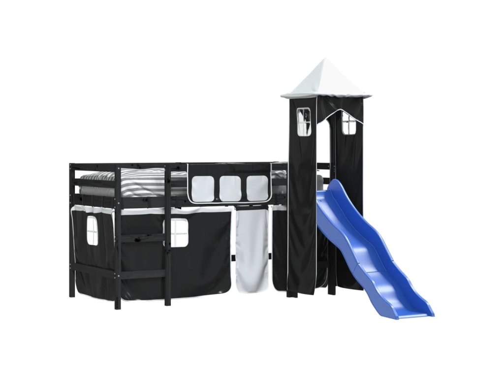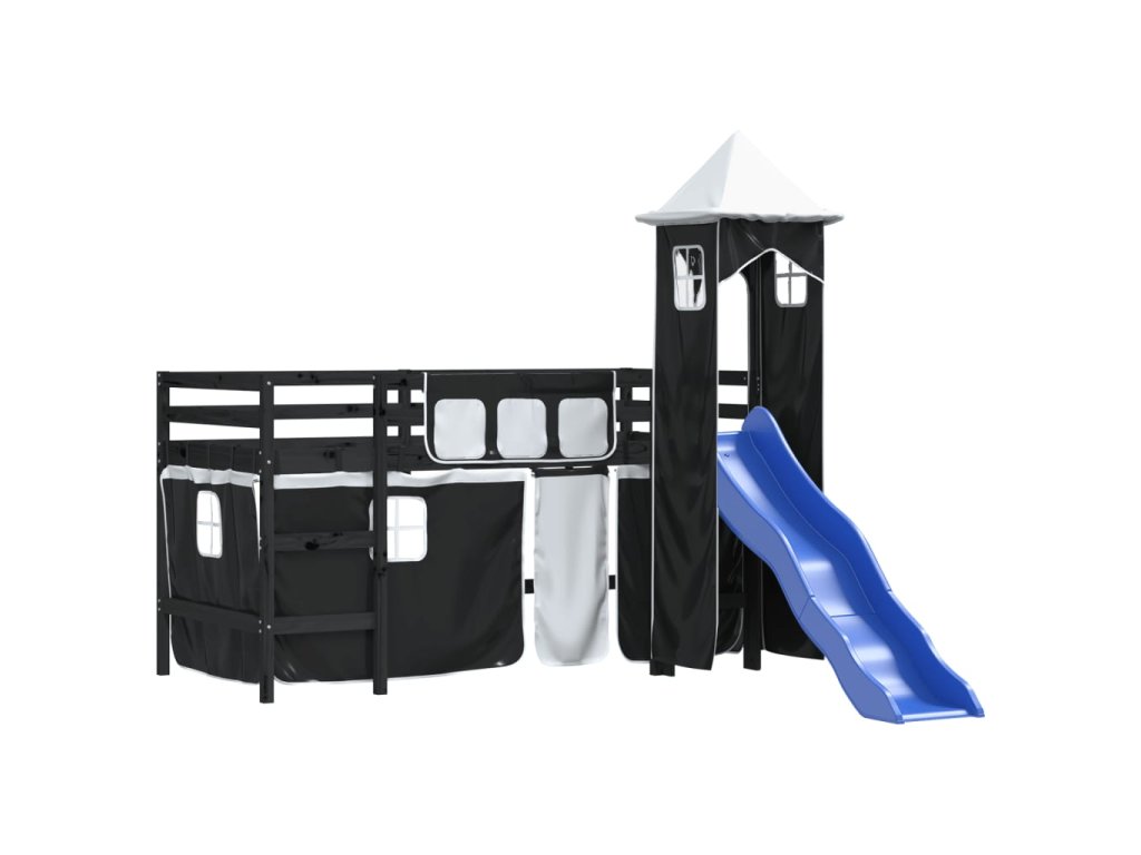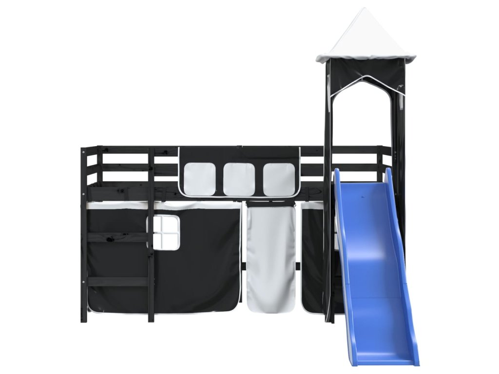 Dětská patrová postel s věží bílá a černá 80 x 200 cm borovice 3207069
