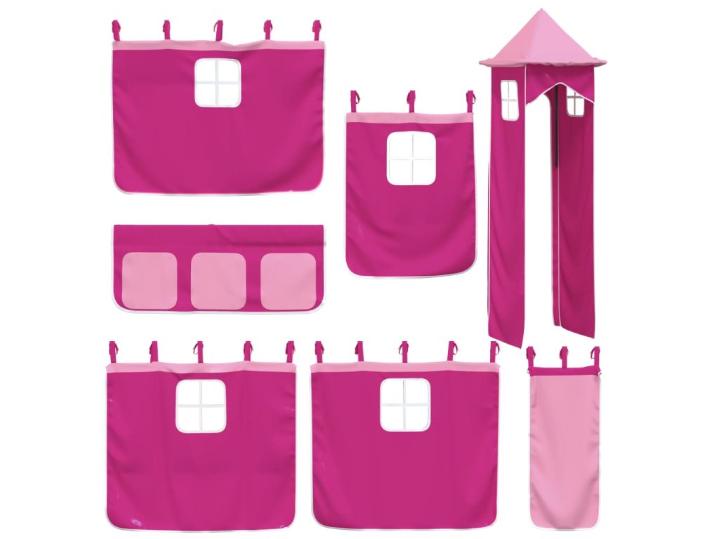 Dětská patrová postel s věží růžová 80 x 200 cm masiv borovice 3207071