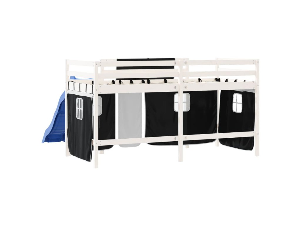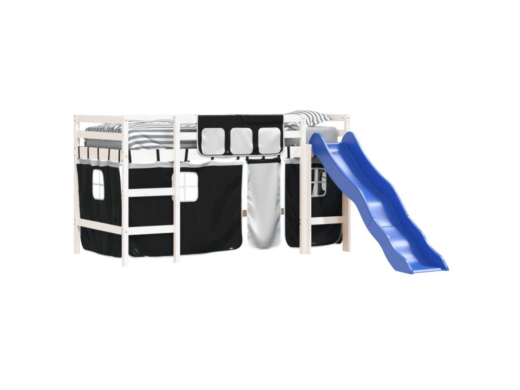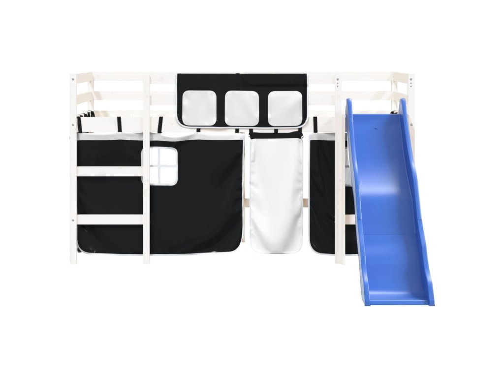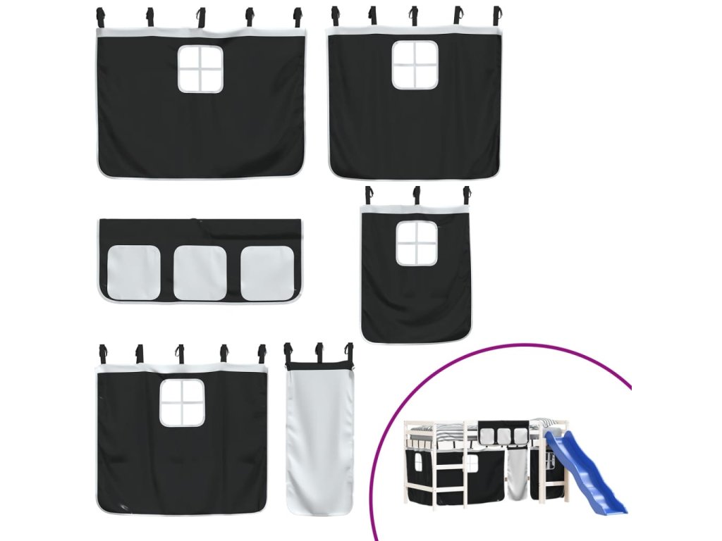 Dětská patrová postel se závěsy bílá a černá 80x200 cm borovice 3207012