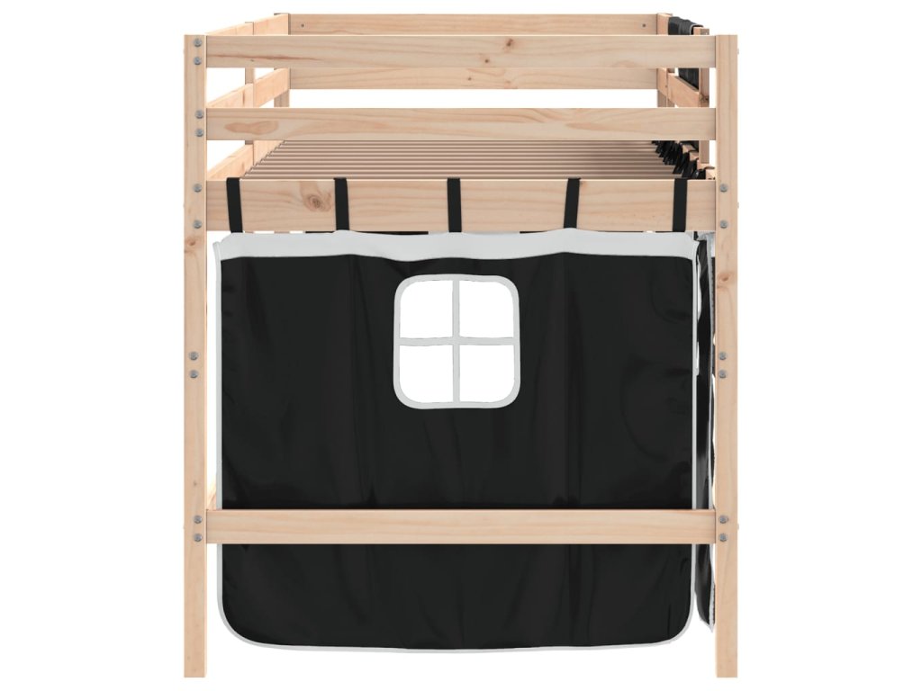 Dětská patrová postel se závěsy bílá a černá 90x190 cm borovice 3206973