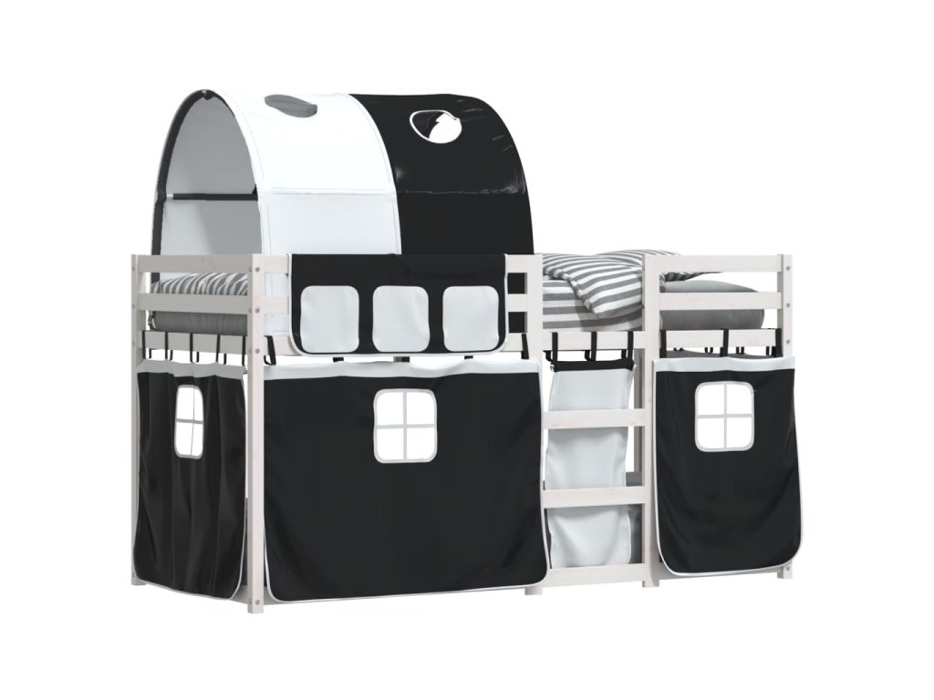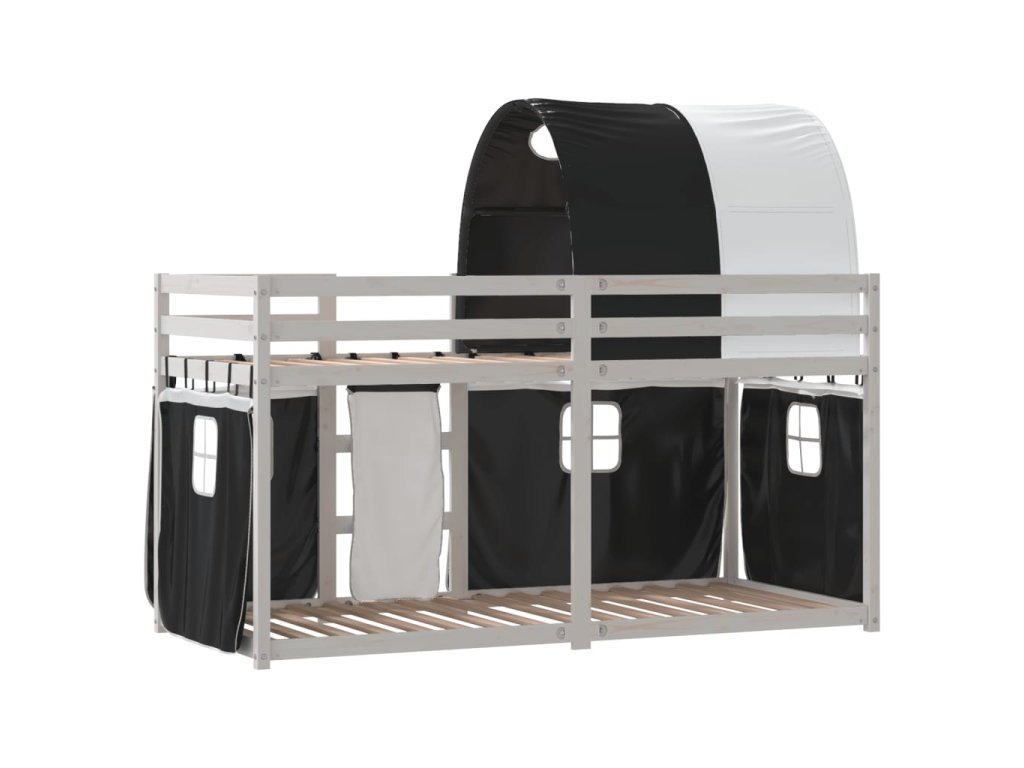 Dětská patrová postel se závěsy bílá a černá 90x190 cm borovice 3284030
