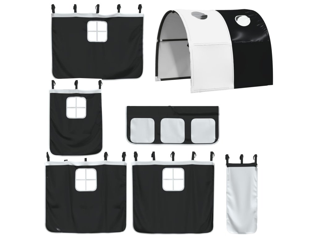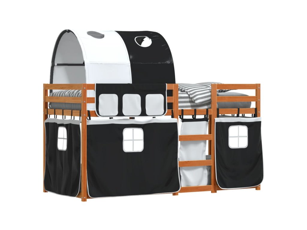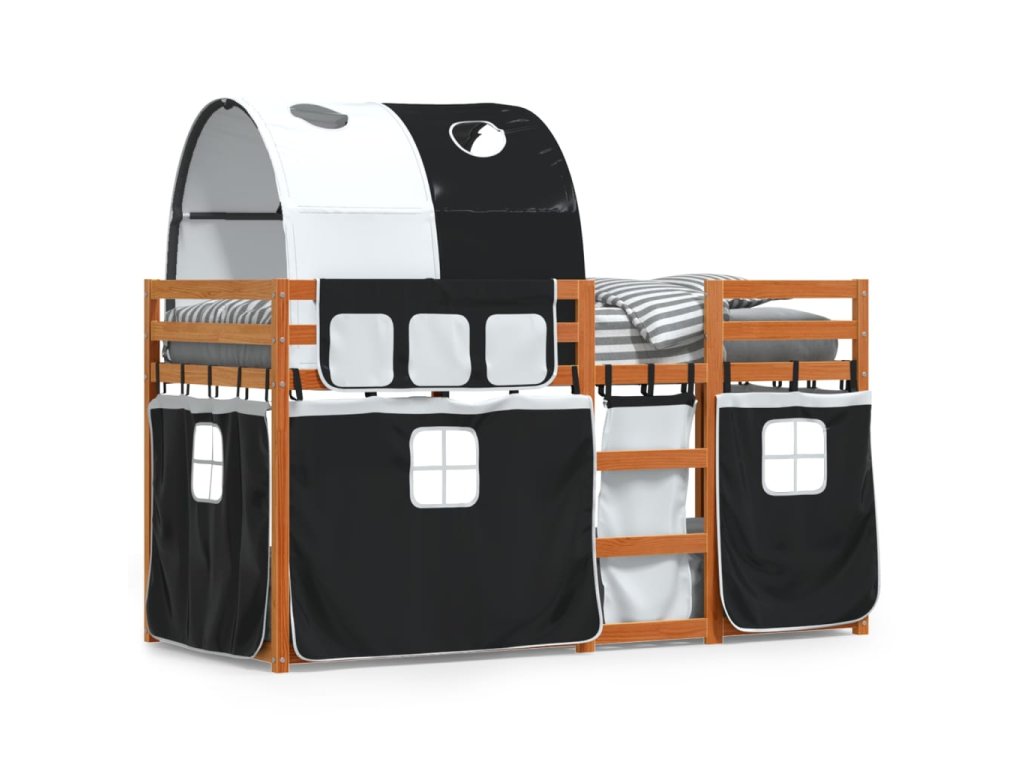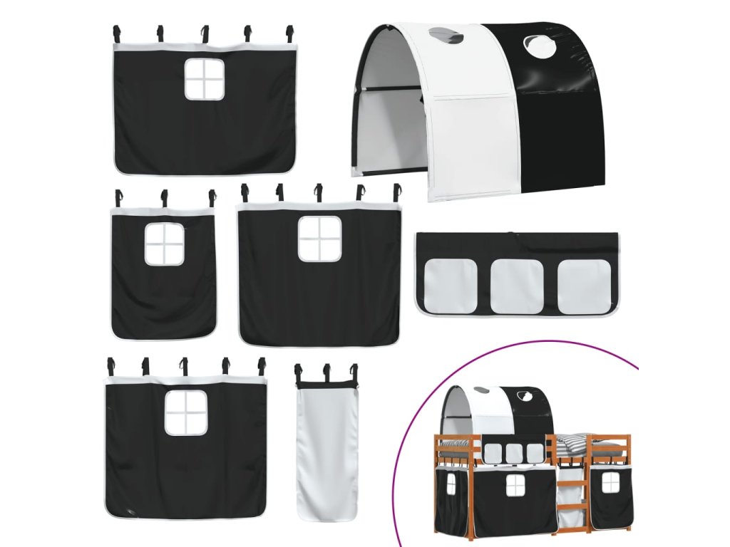 Dětská patrová postel se závěsy bílá a černá 90x190 cm borovice 3284039