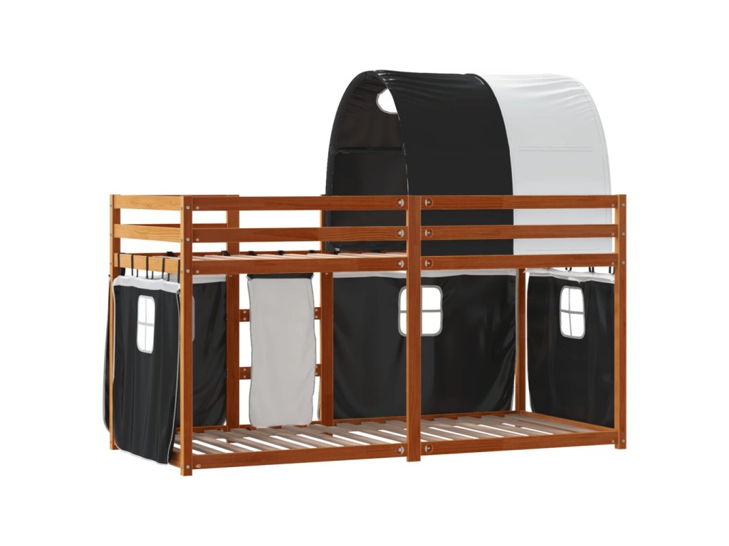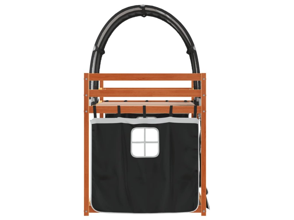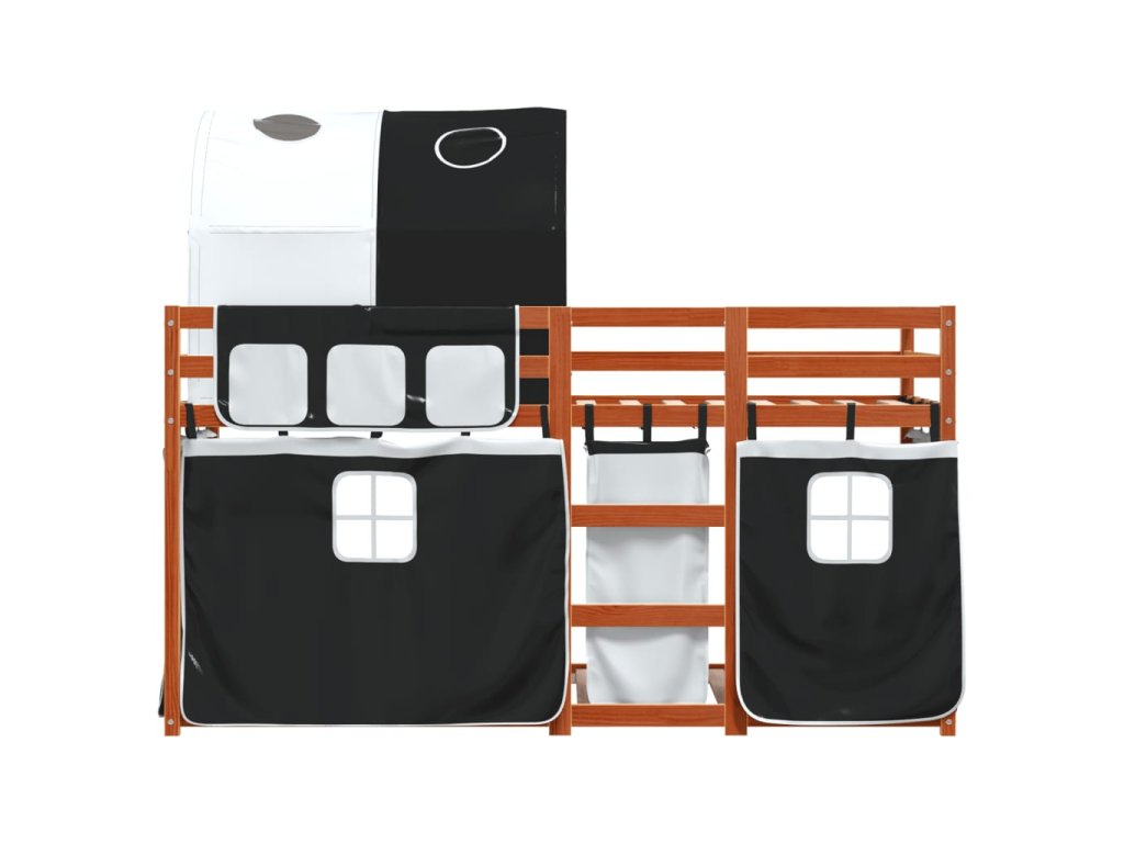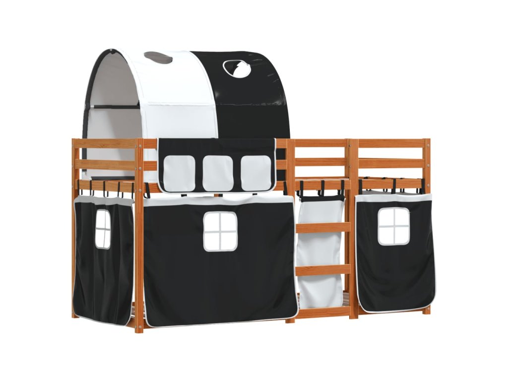 Dětská patrová postel se závěsy bílá a černá 90x190 cm borovice 3284039