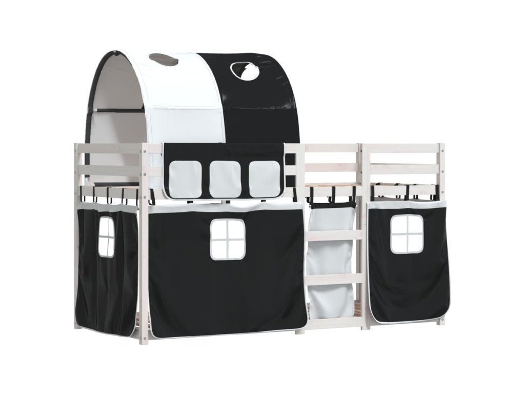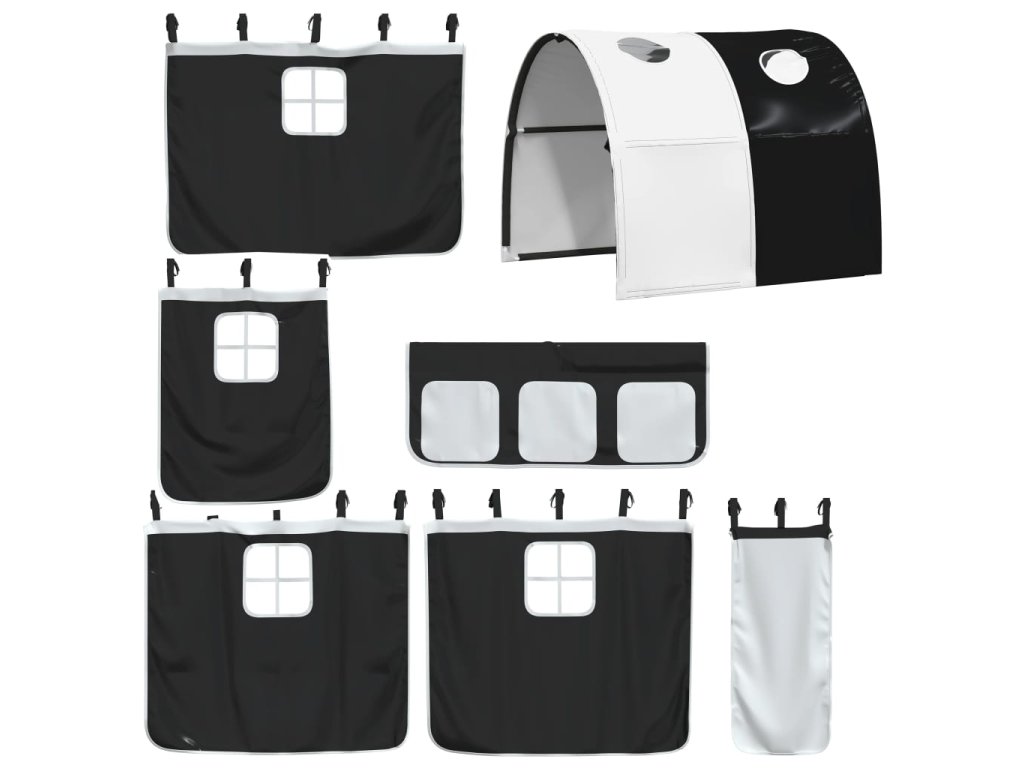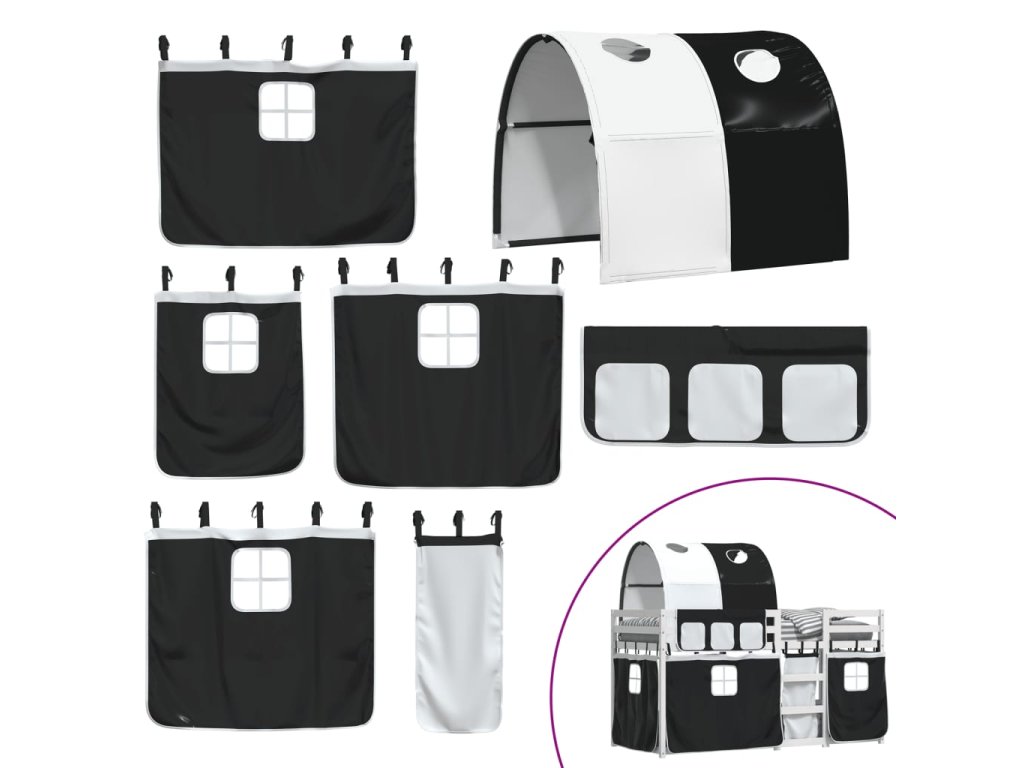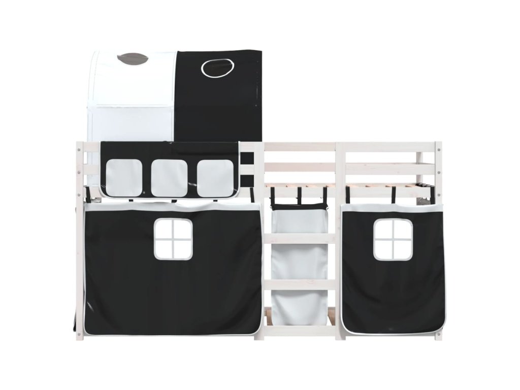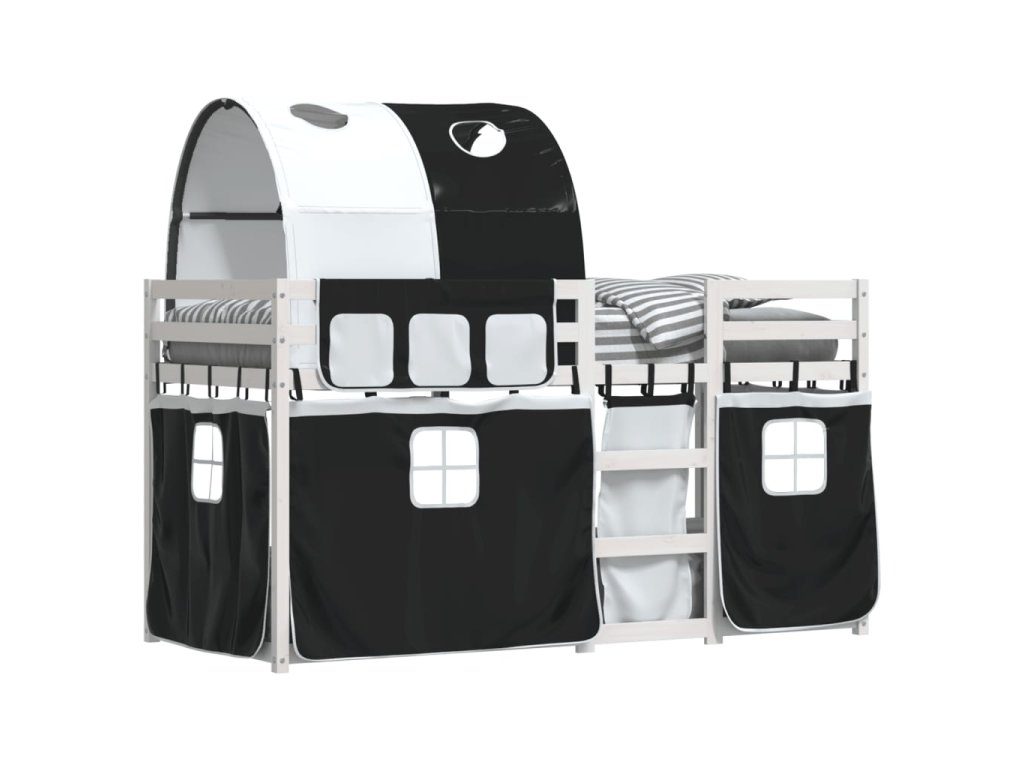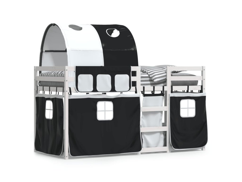 Dětská patrová postel se závěsy bílá a černá 90x200 cm borovice 3283985