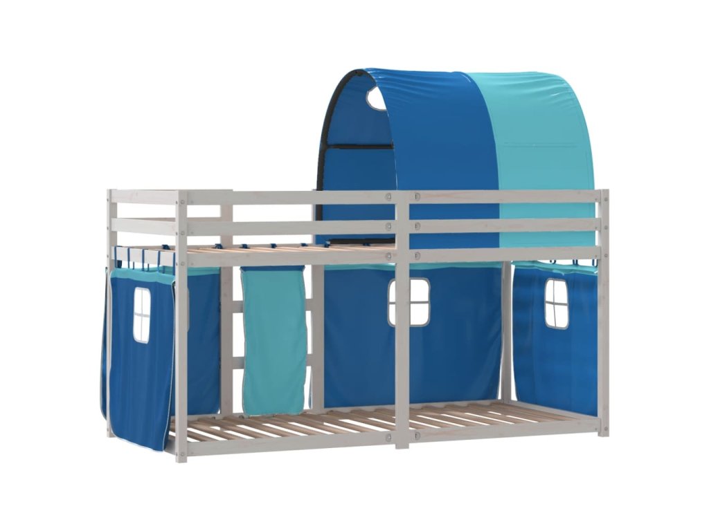 Dětská patrová postel se závěsy modrá 90 x 190 cm borovice 3283998