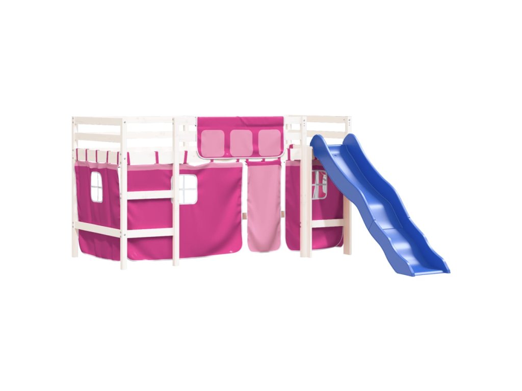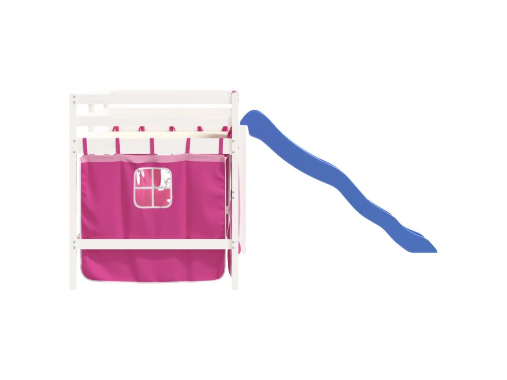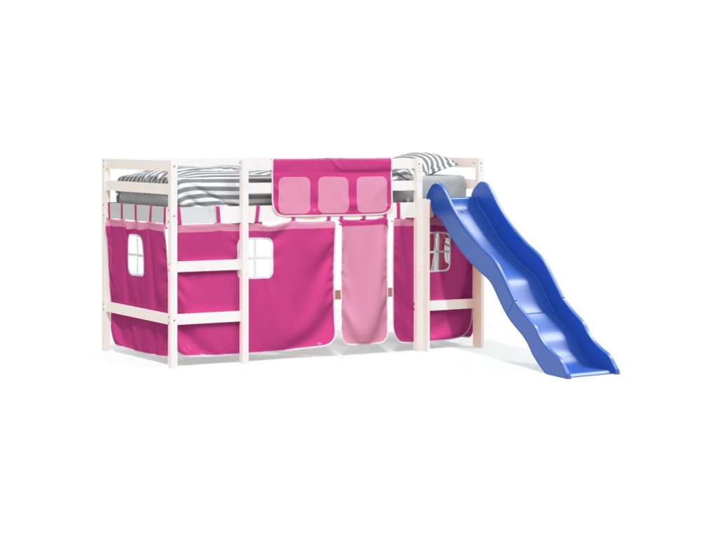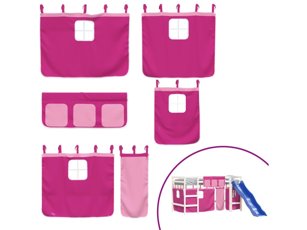 Dětská patrová postel se závěsy růžová 80 x 200 cm borovice 3207014