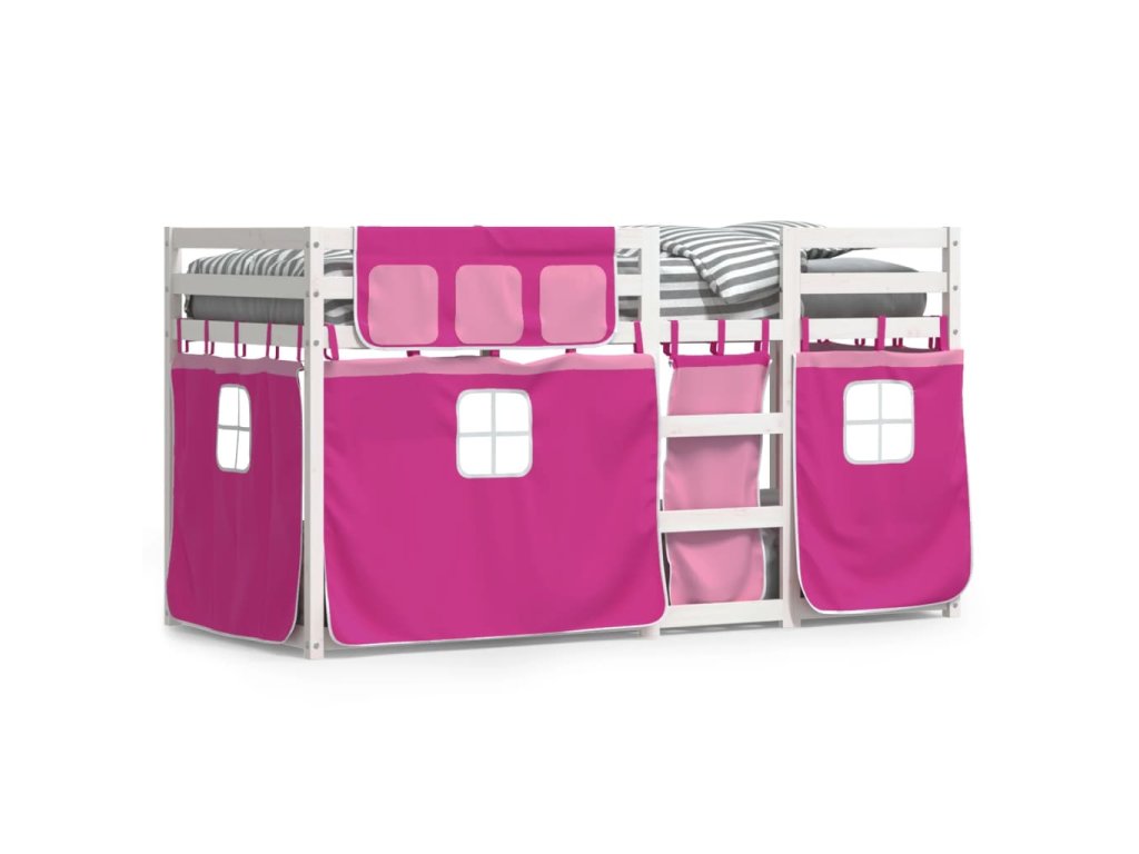Dětská patrová postel se závěsy růžová 90 x 200 cm borovice 3283897