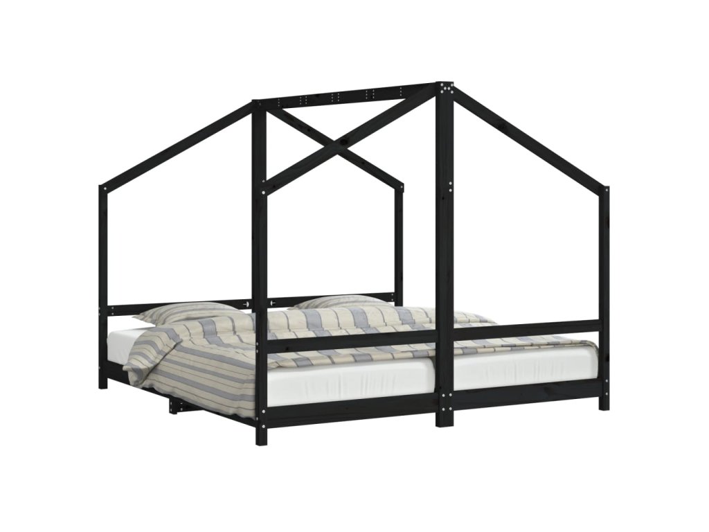Dětská postel černá 2x (90 x 190) cm masivní borové dřevo 3200600