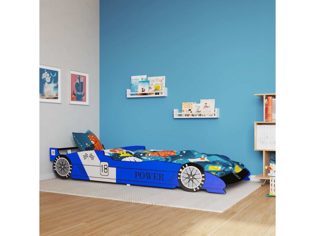 Dětská postel ve tvaru závodního auta 90x200 cm modrá 244465
