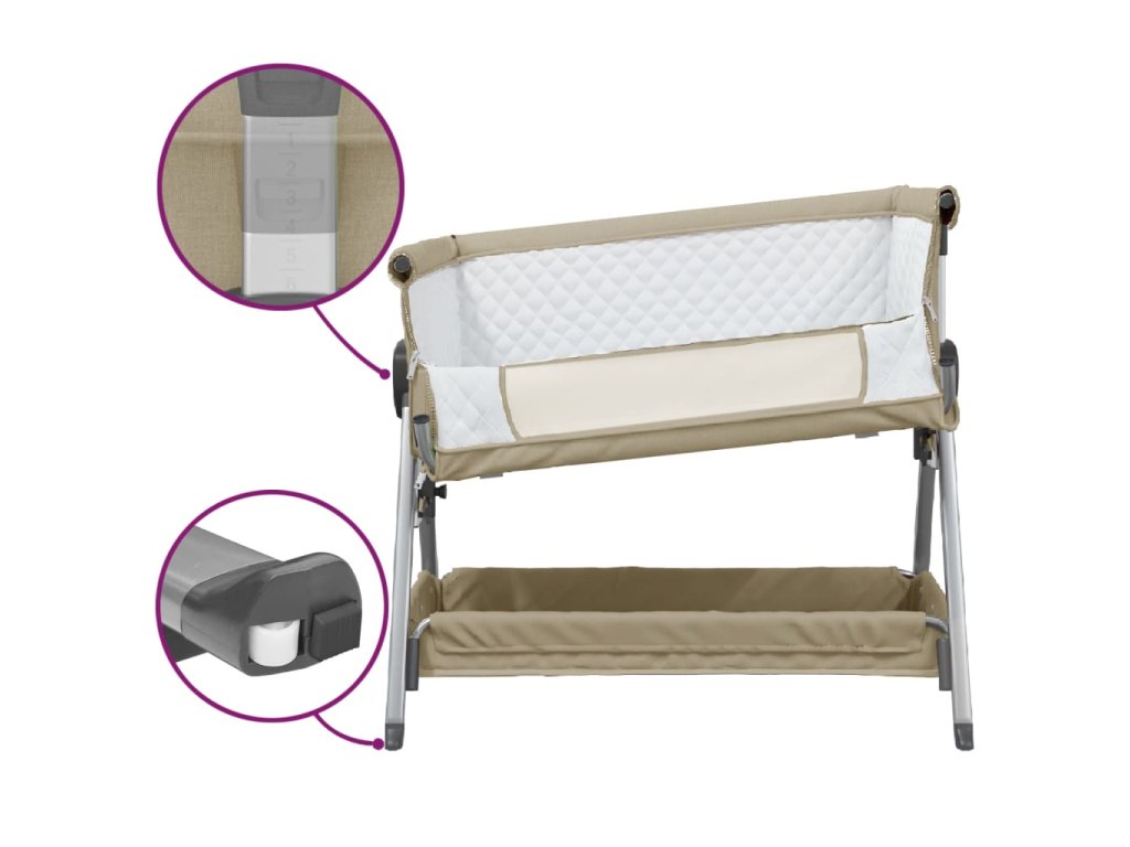 - Úložný prostor: Úložný koš pod dětskou postýlkou umožňuje snadné uspořádání věcí.