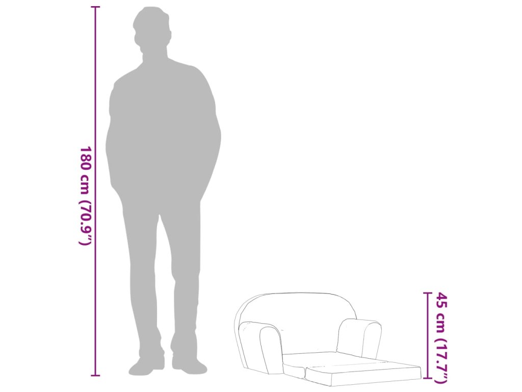 Toto měkké plyšové křeslo v dětské velikosti bude pohodlným místem k posezení, kde si vaše dítě může odpočinout mezi všemi svými vzrušujícími aktivitami, a dá se rozložit na relaxační lehátko, výborné pro hru na podlaze nebo malé zdřímnutí.