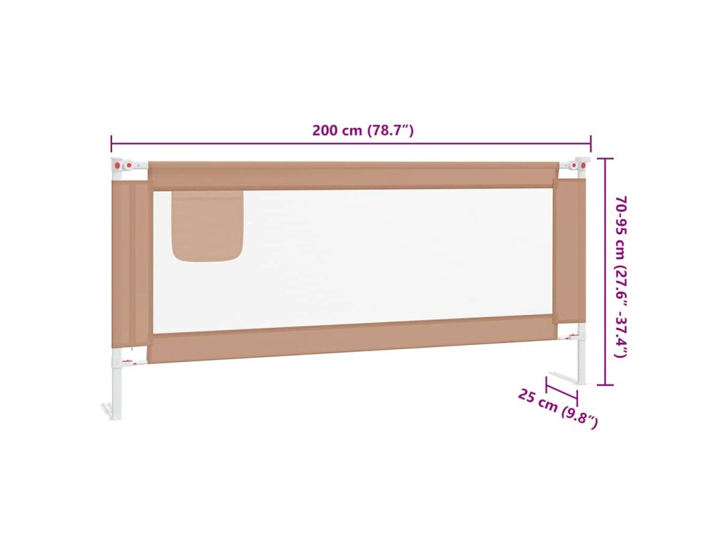 Zábrana na postel je vyrobena z omyvatelné polyesterové tkaniny a lehké kovové trubky, je tedy pevná, odolná a snadno se čistí. Na každé straně je vybavena knoflíkem, takže ji můžete snadno sklopit. Výšku lze navíc libovolně nastavit do nejbezpečnější polohy. Upozornění: Tato zábrana na postel je vhodná pro děti ve věku od 18 měsíců do 5 let. Lze ji použít pro většinu postelí s matrací o tloušťce 3–25 cm s výjimkou palandy, dětské postýlky, vodní postele nebo postele s nafukovací matrací.