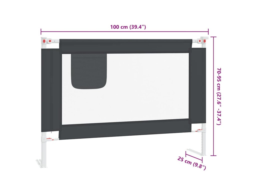 Dětská zábrana k postýlce tmavě šedá 100 x 25 cm textil 10226