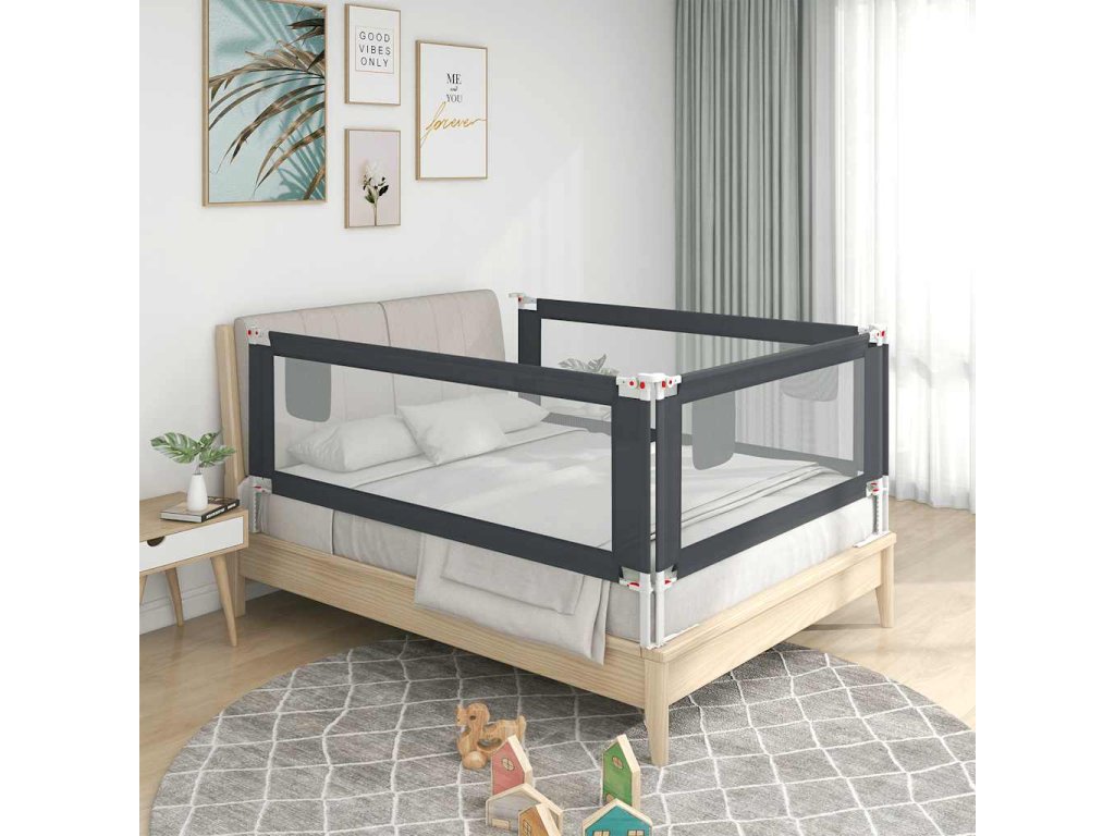 Dětská zábrana k postýlce tmavě šedá 150 x 25 cm textil 10229