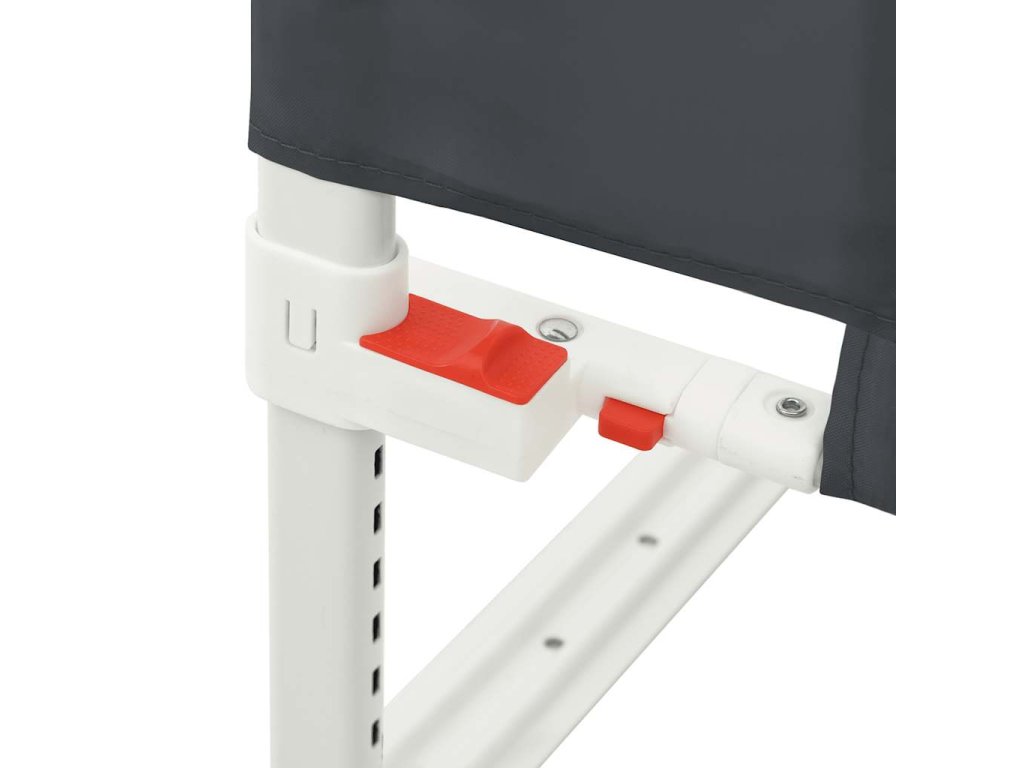 Zábrana na postel je vyrobena z omyvatelné polyesterové tkaniny a lehké kovové trubky, je tedy pevná, odolná a snadno se čistí. Na každé straně je vybavena knoflíkem, takže ji můžete snadno sklopit. Výšku lze navíc libovolně nastavit do nejbezpečnější polohy. Upozornění: Tato zábrana na postel je vhodná pro děti ve věku od 18 měsíců do 5 let. Lze ji použít pro většinu postelí s matrací o tloušťce 3–25 cm s výjimkou palandy, dětské postýlky, vodní postele nebo postele s nafukovací matrací.