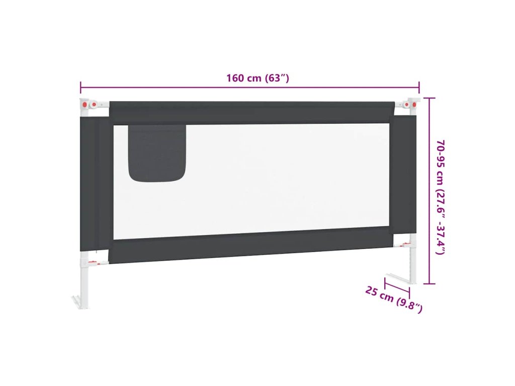 Dětská zábrana k postýlce tmavě šedá 160 x 25 cm textil 10230