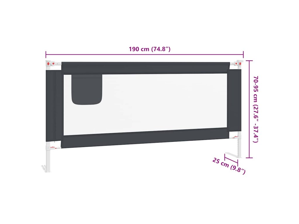 Dětská zábrana k postýlce tmavě šedá 190 x 25 cm textil 10232