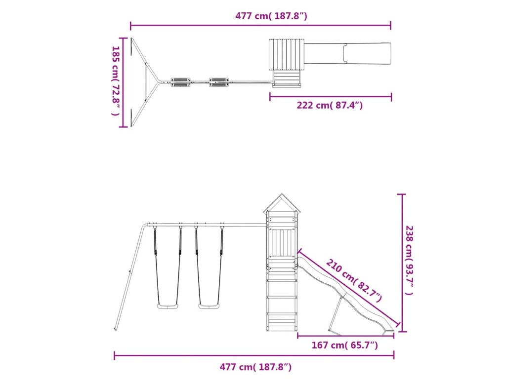 - Multifunkční herní centrum: Dětské hřiště je vybavené plošinou ve výšce 118 cm a vyniká zvlněnou skluzavkou, dvěma houpačkami a pískovištěm. A navíc si mohou pozvat kamarády a užívat si zábavu společně.