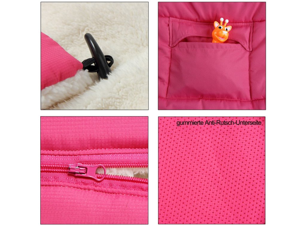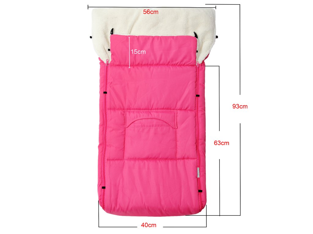 Růžový zimní fusak do kočárku a autosedačky, s podšívkou, celoplošným zipem, kapsou a protiskluzovou spodní stranou