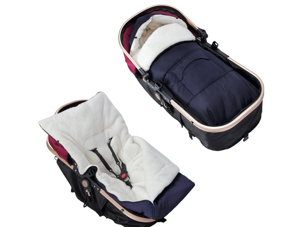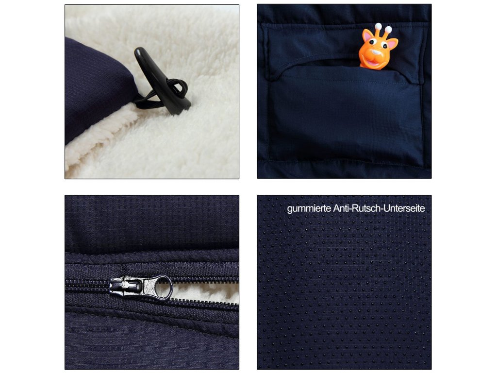 Zimní fusak do kočárku a autosedačky, námořnický modrý, s podšívkou, zipy po celém obvodu, protiskluzovou úpravou a úložnou kapsou