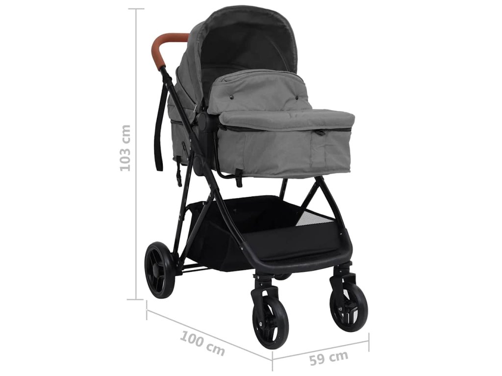 Dětský kočárek 2 v 1 světle šedý a černý ocel 10335
