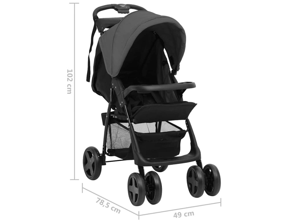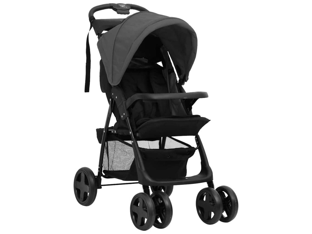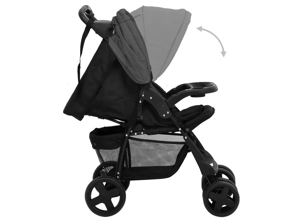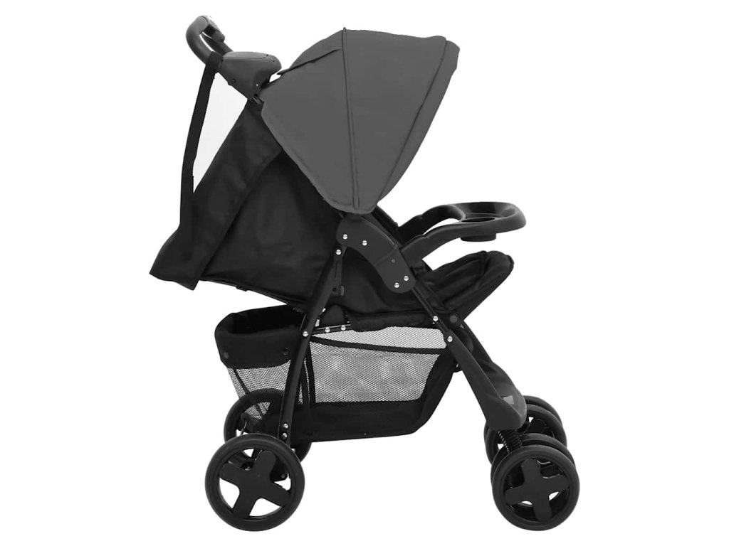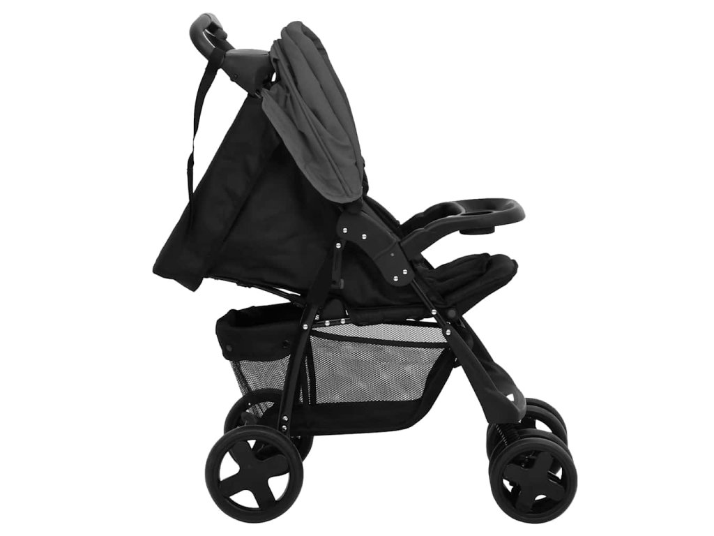 Dětský kočárek 2 v 1 tmavě šedý a černý ocel 10384
