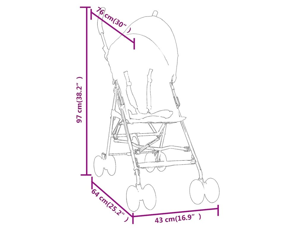 Ocelový rám zajišťuje, že kočárek je pevný a odolný. Nastavitelná stříška chrání miminko před škodlivými UV paprsky. 3bodový bezpečnostní pás zajišťuje bezpečnost vašeho miminka, zatímco otočná přední kola se starají o snadnou manipulaci. Díky skládací konstrukci se kočárek snadno přenáší a skladuje.