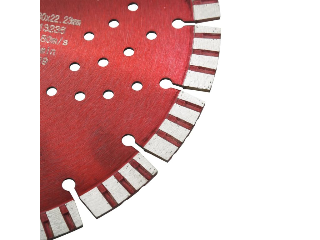 Originální turbo segmenty diamantového kotouče zaručují rychlejší řeznou rychlost a zároveň hladký řez. Prémiová ocel a diamantový materiál eliminují úbytek materiálu, a tím se prodlužuje jeho provozní životnost. Diamantový kotouč je navíc vyráběný lisováním za studena a je vhodný pro řezání za mokra i za sucha.