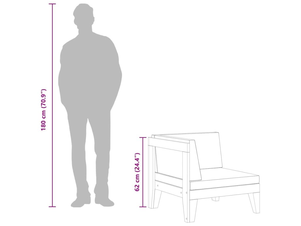 Rohová sedačka je vyrobená z masivního akáciového dřeva, které je velmi odolné i proti klimatickým vlivům. Rohová pohovka má pevnou konstrukci a nevyžaduje téměř žádnou údržbu. Společně s vycpanými poduškami vám poskytne skvělý komfort. Dřevěná pohovka je speciálně designovaná jako část setu zahradního posezení, ale používat ji můžete i samostatně. V kombinaci s dalšími modulárními segmenty, jako je konferenční stolek, podnožka a střední pohovka, a vytvořit si vlastní originální zahradní posezení.