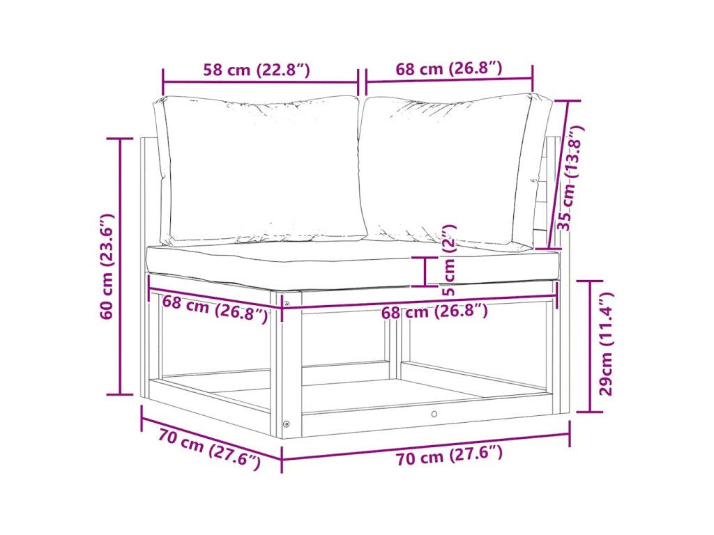Sada pohovek s masivním dřevěným akáciovým rámem je pevná, robustní a má dlouhou životnost. Sada pohovek s olejovou povrchovou úpravou je vhodná pro venkovní použití. Polstrovaný sedák a podušky na opěradle poskytují maximální pohodlí při sezení. Tyto dílčí kusy můžete zkombinovat s dalšími dostupnými modulárními segmenty a vytvořit si vlastní zahradní posezení!