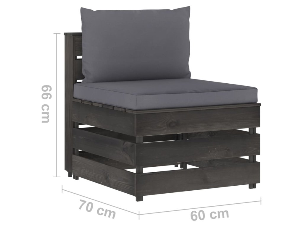 Dílčí středová pohovka s poduškami šedě impregnované dřevo 3068120