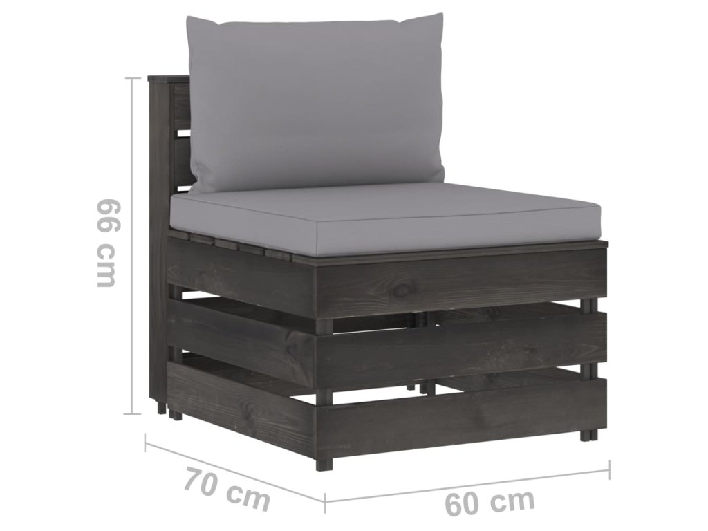 Dílčí středová pohovka s poduškami šedě impregnované dřevo 3068121