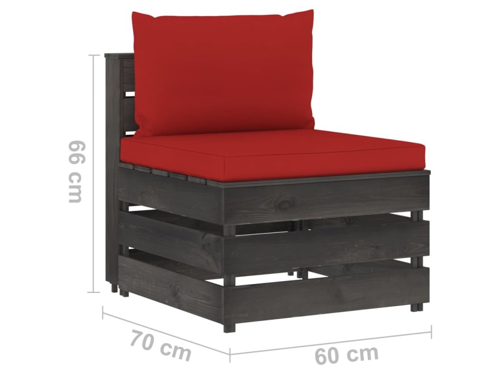 Dílčí středová pohovka s poduškami šedě impregnované dřevo 3068126