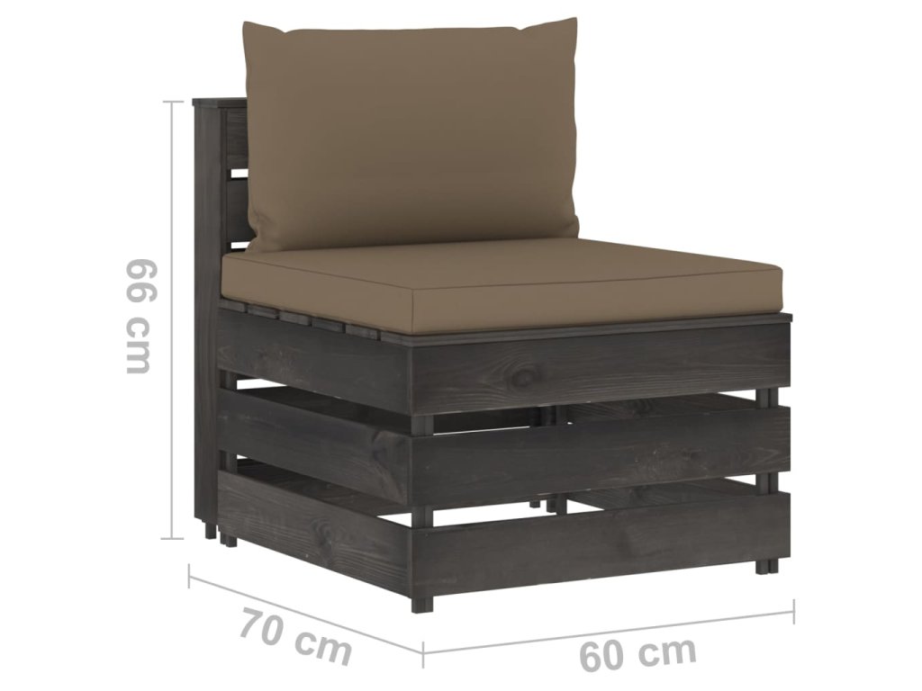 Dílčí středová pohovka s poduškami šedě impregnované dřevo 3068128