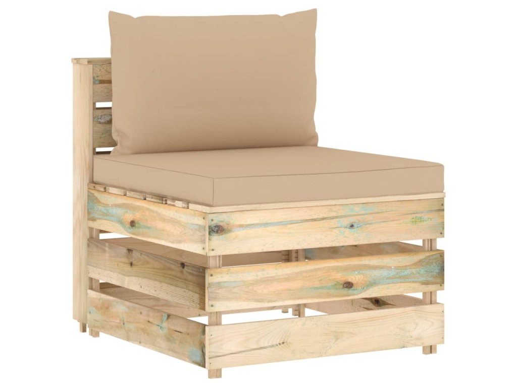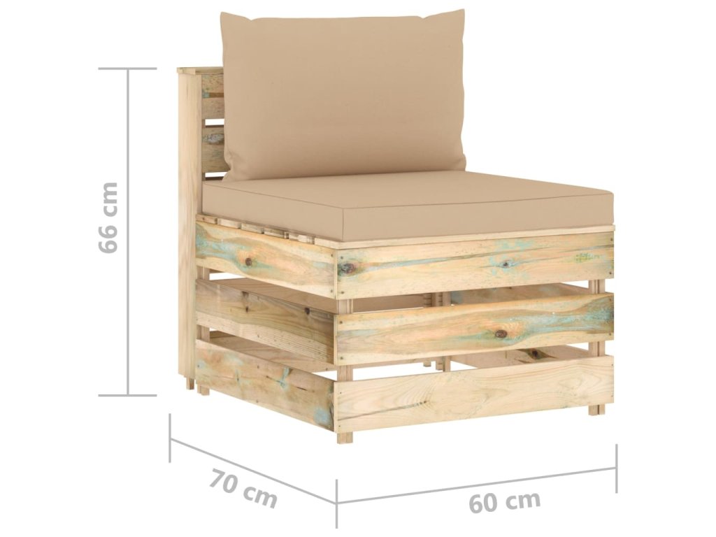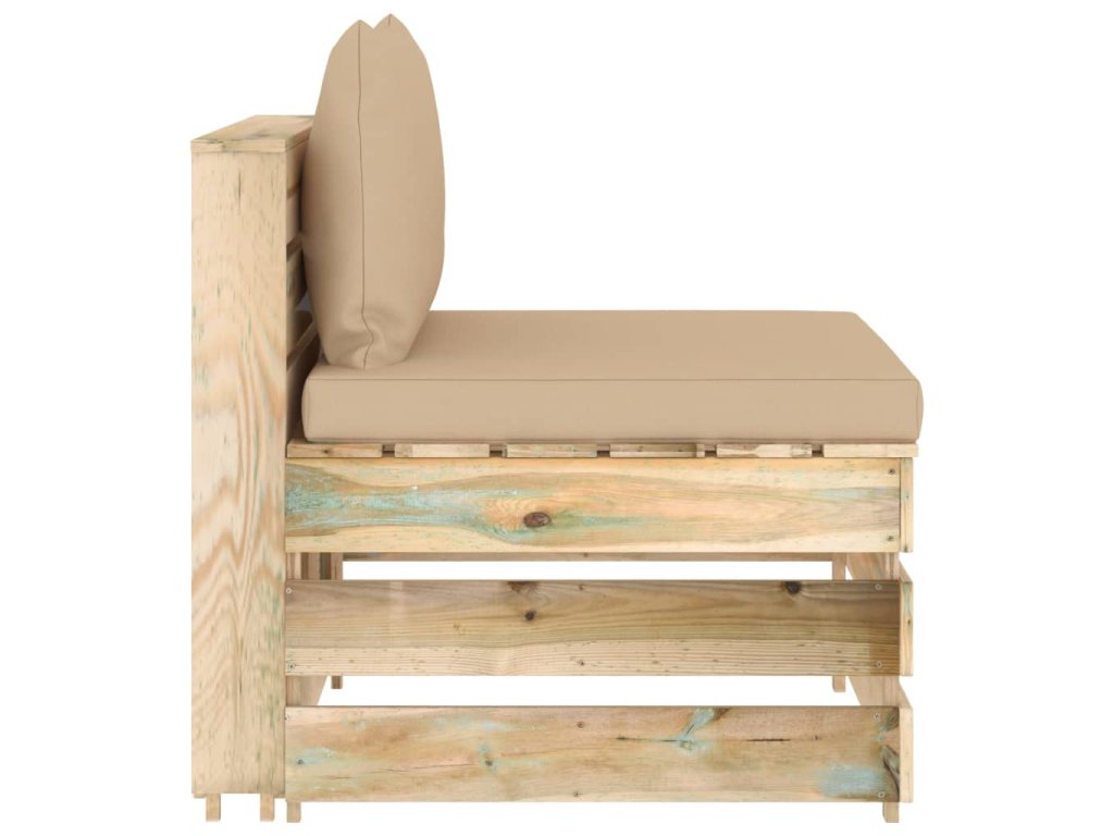 Dílčí středová pohovka s poduškami zeleně impregnované dřevo 3074510