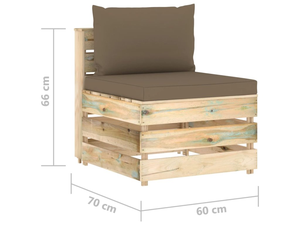 Dílčí středová pohovka s poduškami zeleně impregnované dřevo 3074515