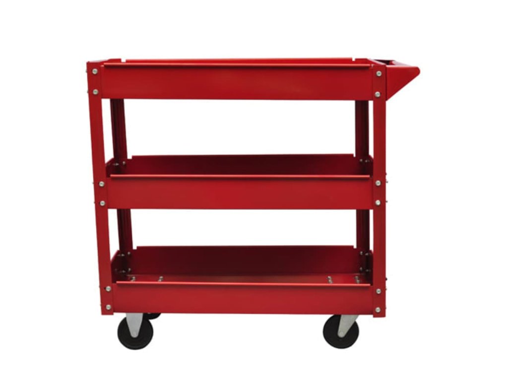 Dílenský vozík na nářadí má robustní konstrukci se 3 policemi a unese maximální zatížení 100 kg. Má lakovanou ocelovou konstrukci. Všechna čtyři kolečka se mohou otáčet. Disponuje také vhodnou rukojetí pro manipulaci vozíku.