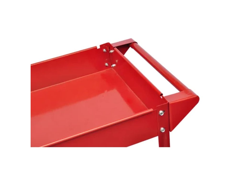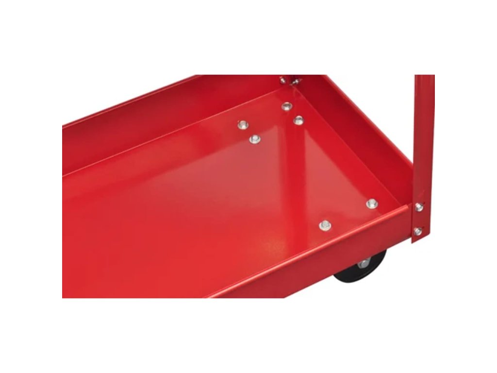 Tento dílenský vozík na nářadí má robustní konstrukci se 2 policemi a unese maximální zatížení 100 kg. Tento dílenský vozík je perfektní volbou pro snadné a bezpečné skladování a přepravu vašeho nářadí v garáži a dílně. Má lakovanou ocelovou konstrukci. Všechna čtyři kolečka se mohou otáčet. Disponuje také vhodnou rukojetí pro manipulaci vozíku.